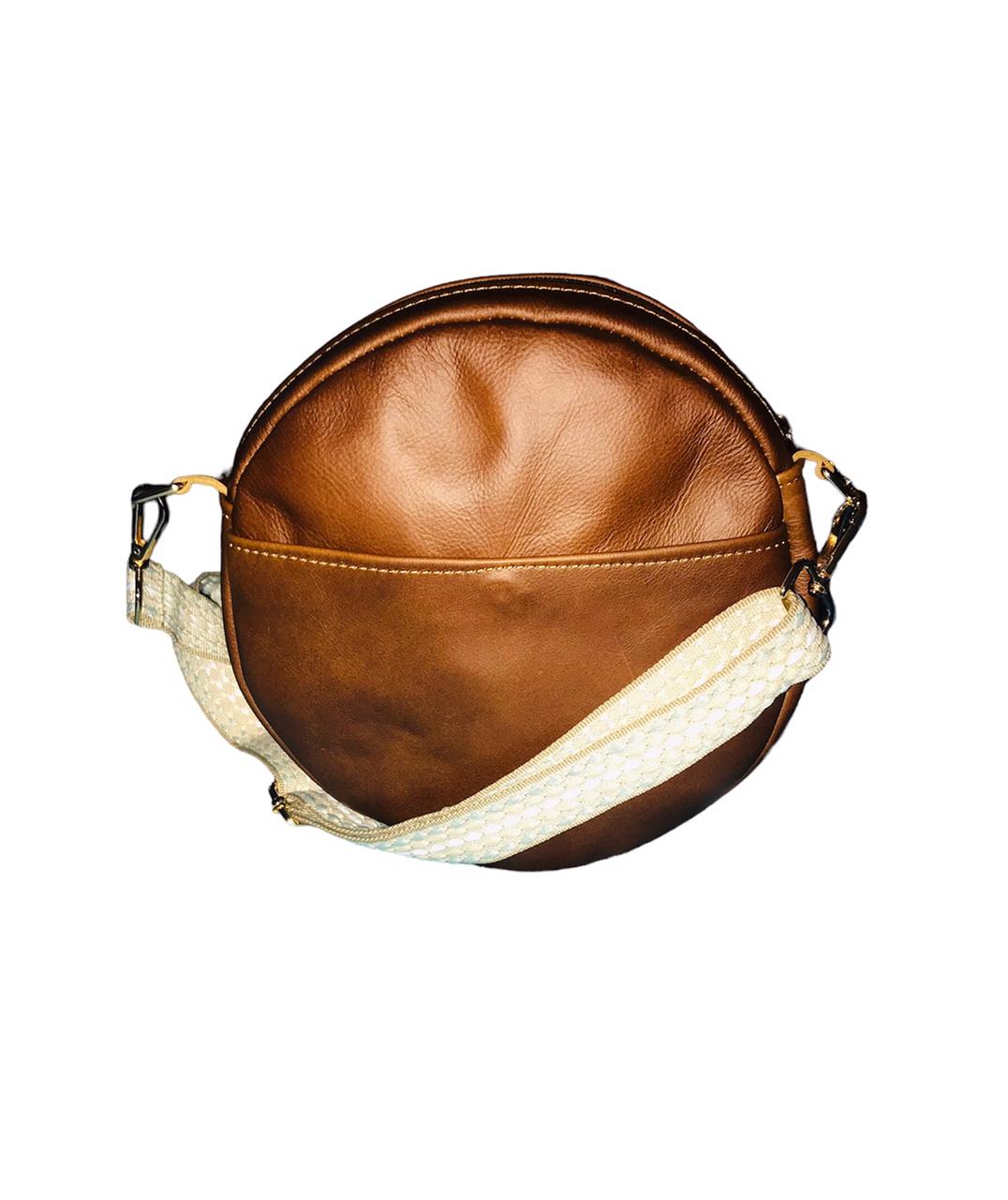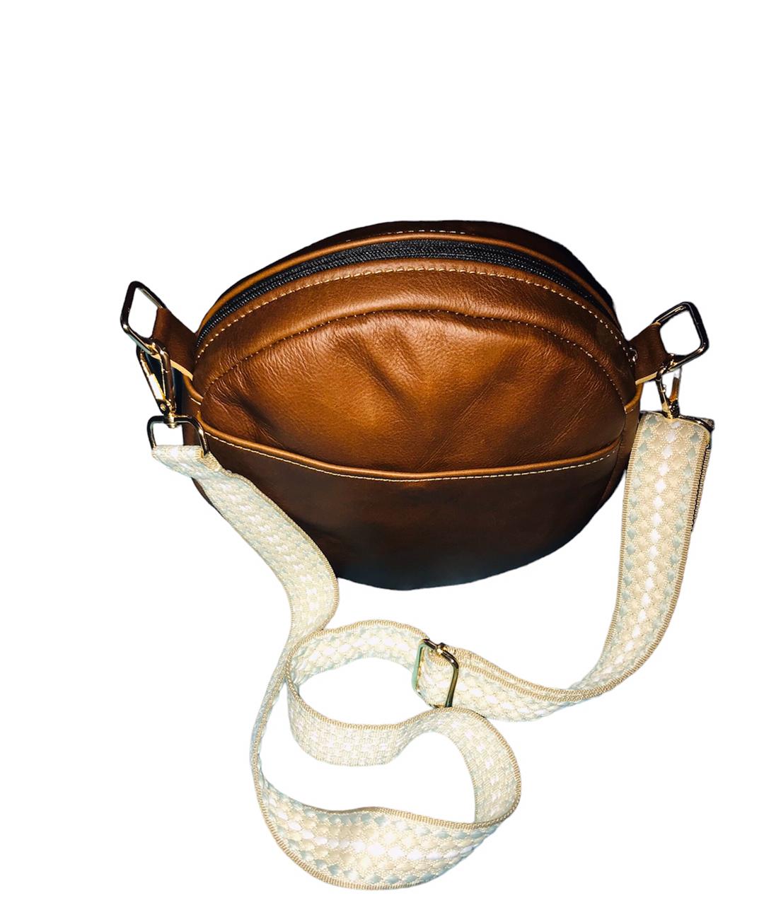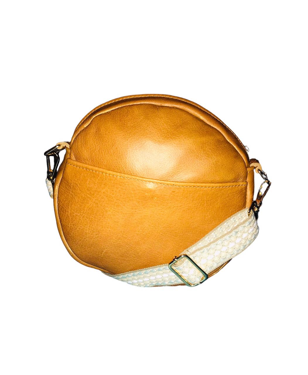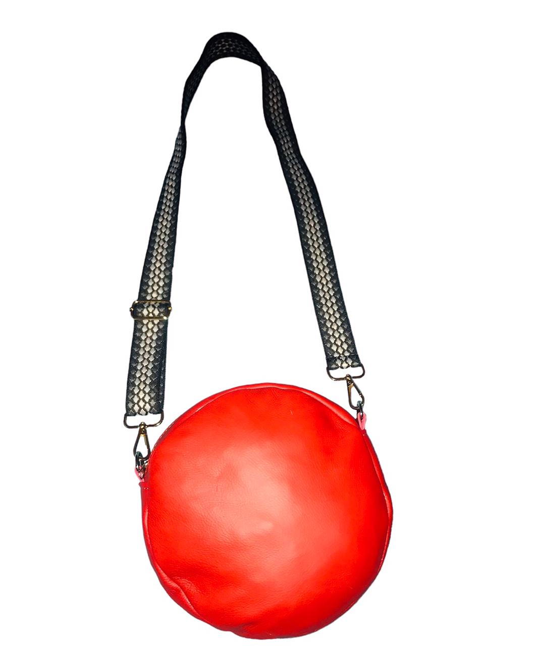 Round bag with handle and adjustable and removable shoulder strap. Comfortable model
