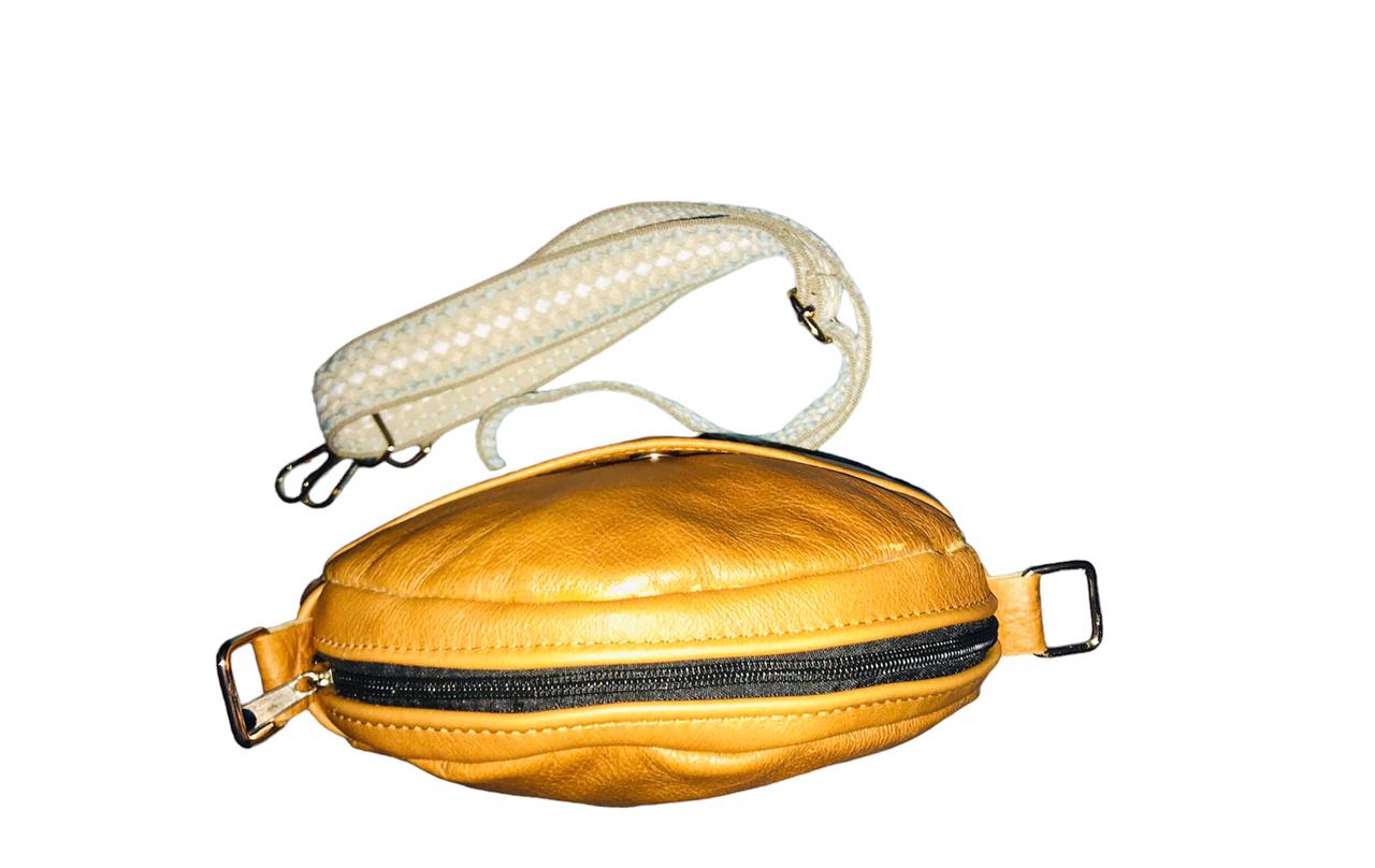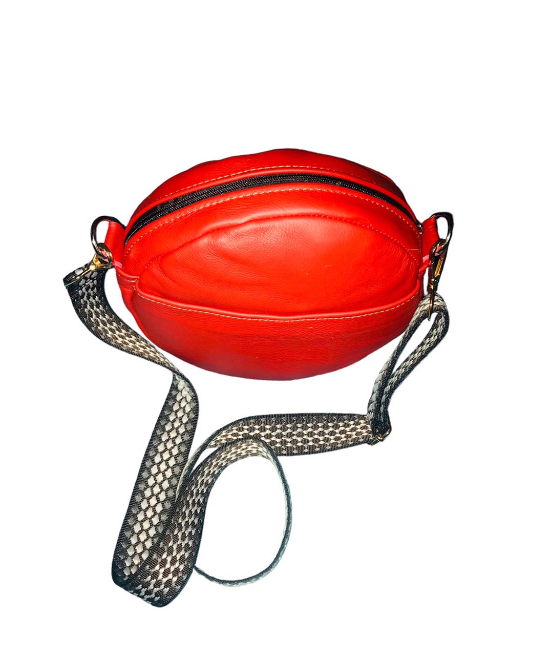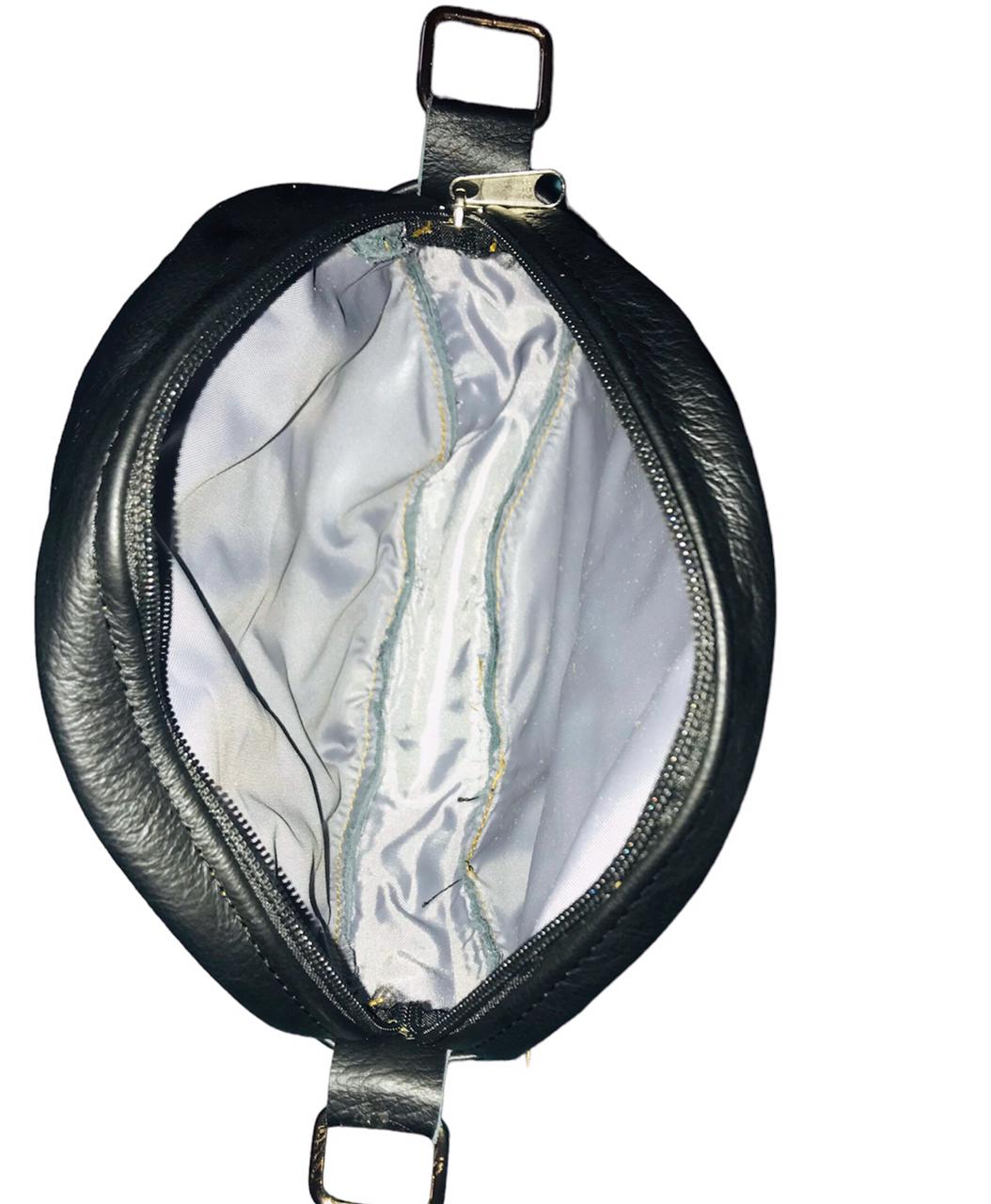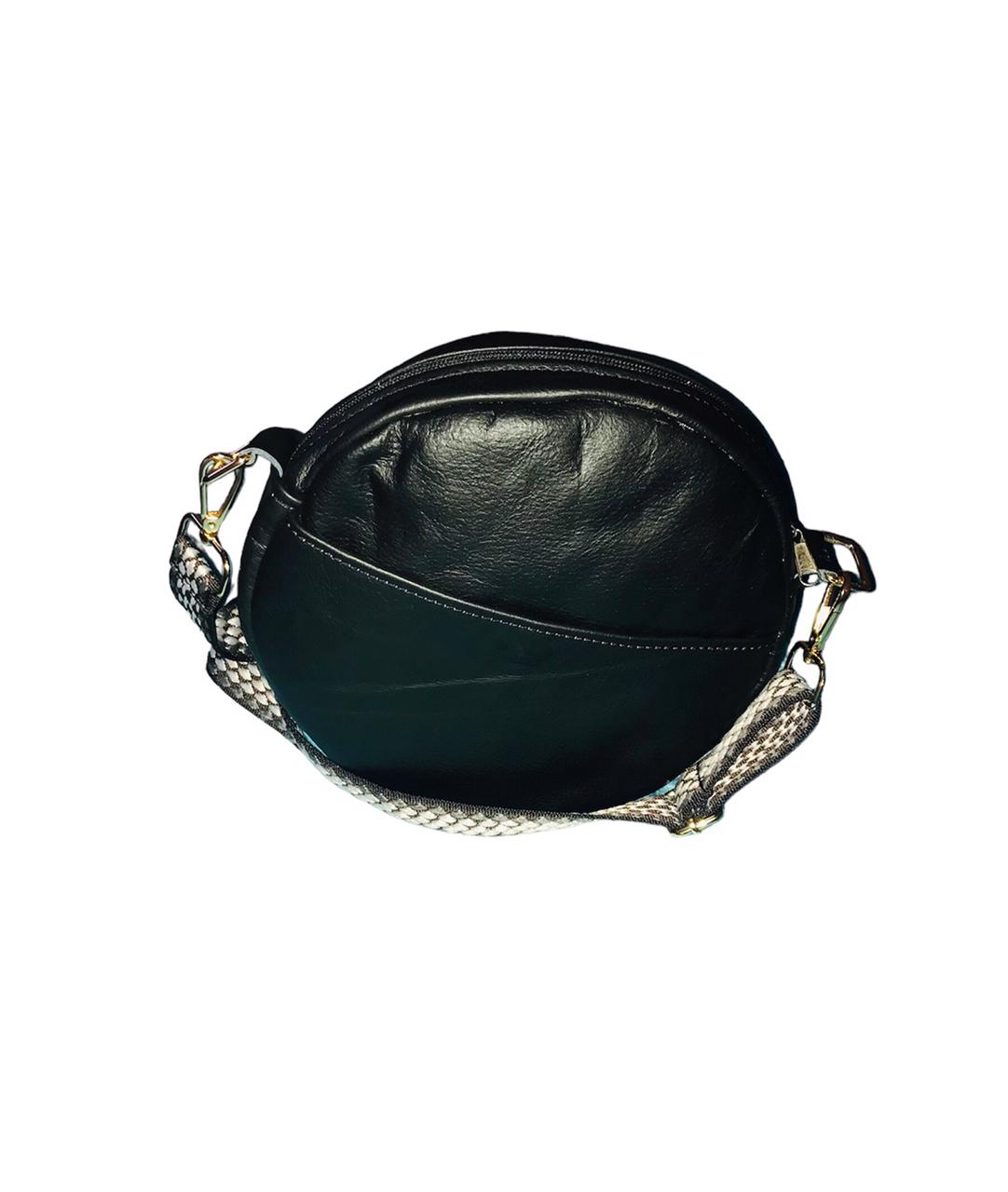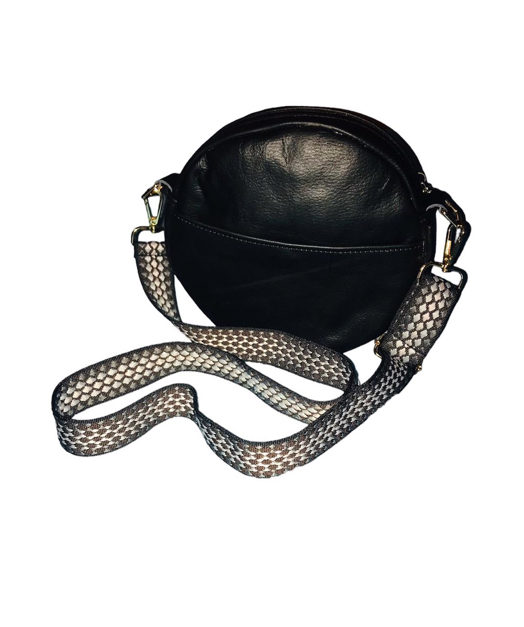 Round bag with handle and adjustable and removable shoulder strap. Comfortable model